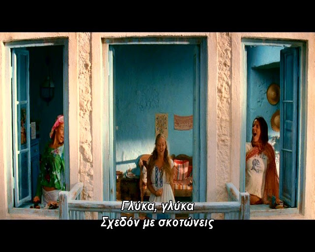 Είδα την ταινία και ναι..ναι..ναι αυτό είναι το καλύτερο styling ελληνικού νησιώτικου σπιτιού που έχω δει…(πιστέψτε με έχω δει αρκετά). Στο Mamma Mia όλα έρχονται και ταιριάζουν τόσο καλά με την Ελλάδα μας, που καλύτερη διαφήμιση δεν έχω. Το vintage στην αγνότερη ελληνική μορφή και το έθνικ μας στην τελειότητα του. Η Σκόπελος κερδίζει για του χρόνου στις καρδιές όλων αυτών που θα δουν την ταινία. Ειδικά τα λευκά είδη…τςτςτς τι να λέμε τώρα. Διεύθυνση φωτογραφίας ένας Έλληνας, ο Χάρης Ζαμπαρλούκος. Αν μου βρείτε και το στυλίστα θα σας φιλήσω… αξίζει να αναφερθεί. Σκέφτομαι να τσεκάρω τα λευκά είδη στο διαδίκτυο και να τα ξαναπούμε. Επίσης θα τσεκάρω και όλες τις ντουλάπες της γιαγιάς μου (…αυτές που γλύτωσαν δηλαδή). Last but not least ΑΒΒΑ music. Gimme gimme…