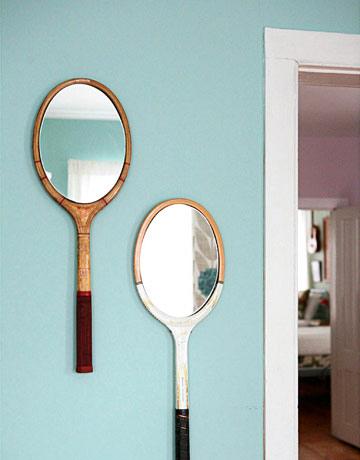 Και συνεχίζοντας με αθλητικά και λοιπές ιστορίες παρατημένων αθλητικών εξαρτημάτων σας ρωτάω: τι δουλειά έχει πια αυτή η παλιά ρακέτα του τένις στην ντουλάπα σου? Όσο και να σας πληγώνει που ούτε θυμάστε κατά που πέφτει το club, get over this. Κάντε καθρέφτες! Την ωραία ιδέα μας έδωσε το apartment therapy.