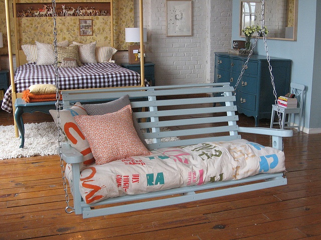 Tώρα ξέρω ποιος θα λατρέψει αυτόν τον τοίχο, αλλά πράγματι αυτός είναι ο σωστός τούβλινος τοίχος διανθισμένος με μια εξαιρετικά vintage ταπετσαρία. Το κρεβάτι είναι από το Ikea (που δεν είναι πλέον διαθέσιμο) και μπροστά του απλώς άλλο ένα τραπεζάκι καθιστικού σε ρόλο ταμπουρέ.
