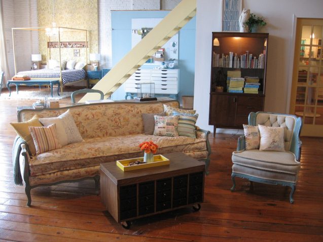 Έχουμε πανοραμική θέα από το πατάρι! Παρατηρήστε -με λατρεία- τα διαφορετικά δάπεδα που αφήνουν μόνο το ξύλο για το υπόλοιπο σπίτι εκτός φυσικά του λουτρού και της κουζίνας! Τα πολλά ετερόκλητα αντικείμενα -που ξέρετε τώρα, αγαπώ!- και όλο αυτό το Mix n’ Match πανηγύρι που δε σ’ αφήνει να βαρεθείς βρε παιδί μου. Όλα ή τα περισσότερα είναι από υπαίθριες αγορές ή παλιατζίδικα και τα υπόλοιπα είναι ιδιοκατασκευές.