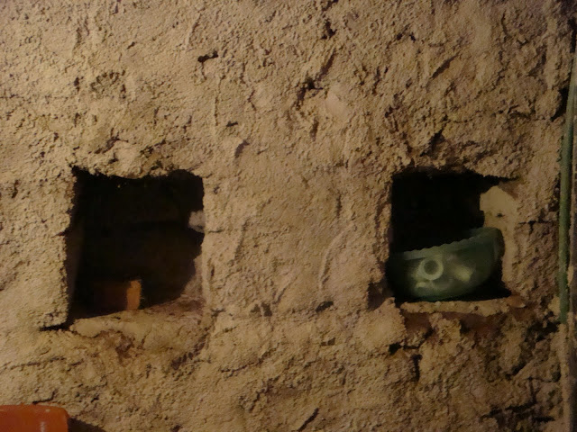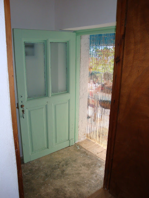 Το δάπεδο τσιμεντοκονία κανονική στο χώρο του καθιστικού και ξύλο στα υπνοδωμάτια. Καμία περιττή πολυτέλεια δε σου σπαταλά χρόνο από την ανειλημμένη υποχρέωση του τσίπουρου με μεζέ. Και τα ποτά: καθαρά λέμε. Μικρές λεπτομέρειες διακόσμησης απλώς συμπληρώνουν χρηστικές ανάγκες, χωρίς να κλέβουν την ουσία που είναι η απλότητα. Στα κρεβάτια -άμα δε κοιμάσαι- βρίσκει τη θέση του απλώς ο τραχανάς.Τα κουφώματα παλιά ξύλινα και τα σκούρα απλή λαμαρίνα με γρίλιες. Οι εσοχές στους τοίχους γίνονται σίγουρα ράφια στολισμένα με δαντέλες, όπως και το γείσο του τζακιού.