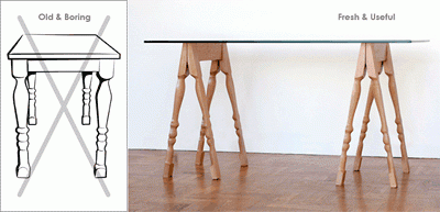 Εδώ μια πιο μπελαλίδικη ιστορία είναι η μετάλλαξη ενός παλιού τραπεζιού.