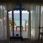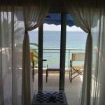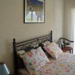 Τα υφάσματα μπορούν να είναι ριγέ εκρού με λευκό και λίγο μπλε για διασκέδαση. Η κρεβατοκάμαρα με τη φοβερή θέα μου άρεσε όπως έχει αλλά θα έβαφα τους τοίχους απαλό γαλάζιο και θα της έκανα καλύτερο styling.