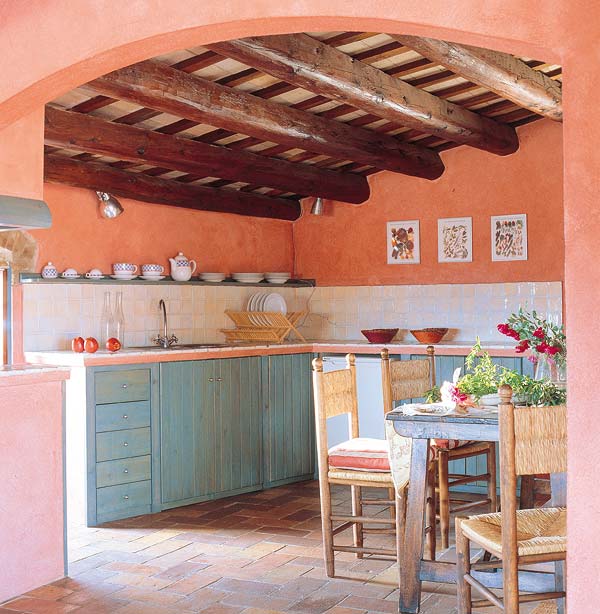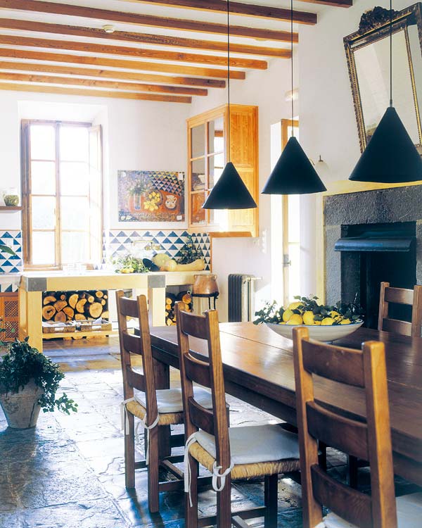 Το χρώμα συνεχίζει και είναι λευκό ή εκρού, το ξύλο σε αποχρώσεις της κερασιάς ή της καρυδιάς λατρεύεται όπως επίσης και τα πλούσια διακοσμητικά στοιχεία όπως γύψινα, τα ψηλά σοβατεπί -που θέλουν ψηλοτάβανους χώρους όμως- οι καμάρες και τα τζάκια. Όλες οι πράσινες και οι κίτρινες ώχρες αποχρώσεις είναι στα καλύτερα τους σε ένα τέτοιο σπίτι. Διάλεξε επίσης ανοιχτόχρωμο δάπεδο για να μη το βαρύνεις πολύ ή πέτρα σε βυζαντινή διάταξη. Οι κουρτίνες πάντα λευκές και διαλεχτές και αέρινες παρακαλώ και φυσικά λουλούδια. Μαξιλαράκια, κούπες και σερβίτσια σε κοινή θέα, καλάθια και κορνίζες, κηροπήγια μεταλλικά αλλά αραχνοΰφαντα και πίνακες αφηρημένοι αλλά με χρώμα έντονο.