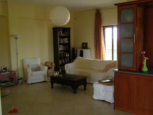 Άντε αγαπητή Κυριακούλα να πιάσουμε και το δικό σου. Αυτό που με κάνει να χαίρομαι είναι ότι αρχίζετε και ζητάτε στυλ συγκεκριμένα και όχι τα ίδια. Άρα άνοιξε το μυαλό σας και το μάτι σας. Έθεσες πολύ σωστά Ελληνιστί το αριστοκρατικό έθνικ ή αλλιώς ethnic chic Κυριακούλα. Αυτό θα κάνουμε σήμερα λοιπόν. Σου έφτιαξα μια κάτοψη με πρόταση τοποθέτησης επίπλων, διαφωνόντας με το κατάστημα γιατί απλώς αν βάλεις τη τιβούλα δεξιά του τζακιού πολύ απλά δε θα βλέπετε. Ο μικρός τοίχος δεν επαρκεί (απ\’ όσο κατάλαβα από την κάτοψη) για να βάλεις κάτι να κάθεσαι. Σου προτείνω να αφήσεις καναπέδες (δύο διθέσιους) σε γωνία μπροστά από την μπαλκονόπορτα και στη μεσοτοιχία. Φυσικά θα μπορούσαν να είναι δύο διαφορετικοί ή ένας καναπές και ένα ανάκλιντρο, ότι σου αρέσει. Στο κέντρο θα μου άρεσε ένα στρογγυλό τραπέζι διαμέτρου 1,20μ. μπόλικο για να είναι εντυπωσιακό. Πίσω από τον καναπέ θα αφήσεις 0,90μ. για να περνάς και να βάλεις μια πλούσια κουρτίνα που θα μπορούσε να τρέχει και σε όλο το πλάτος του τοίχου. Ανάμεσα στους δύο καναπέδες ένα ψηλότερο τραπέζι (Η=0,70μ.) μπορεί να φιλοξενεί κορνίζες και άλλα προσωπικά αναμνηστικά ή όχι αγαπημένα αντικείμενα. Στο δάπεδο θα μου άρεσε ένα χαλί κάτω από το τραπέζι στρογγυλό και αυτό ή κάποιο σοφά επιλεγμένο τετράγωνο κιλίμι τύπου. Ωραίο θα ήταν επίσης και κάποιο μεταξωτό.