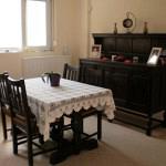 Η τραπεζαρία με τον μπουφε τα αγοράσαμε γιατι και στους 2 μας αρεσει το μοναστηριακο-country στυλ τραπεζιων και γιατι παρολο το μικρο μεγεθος του τραπεζιου (μολις 1,40) ανοιγει στο 2,70! Ο μπουφες ηταν σετ με την τραπεζαρια και το πανω μερος του αφαιρειται αν και δεν εχω αποφασισει ακομα τι θα κανω με αυτό. Ολοκληρη η τραπεζαρια θα συντηρηθει εκ νεου και θα βαφτει σε πολύ σκουρα καρυδια.