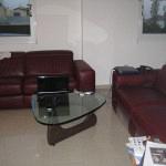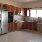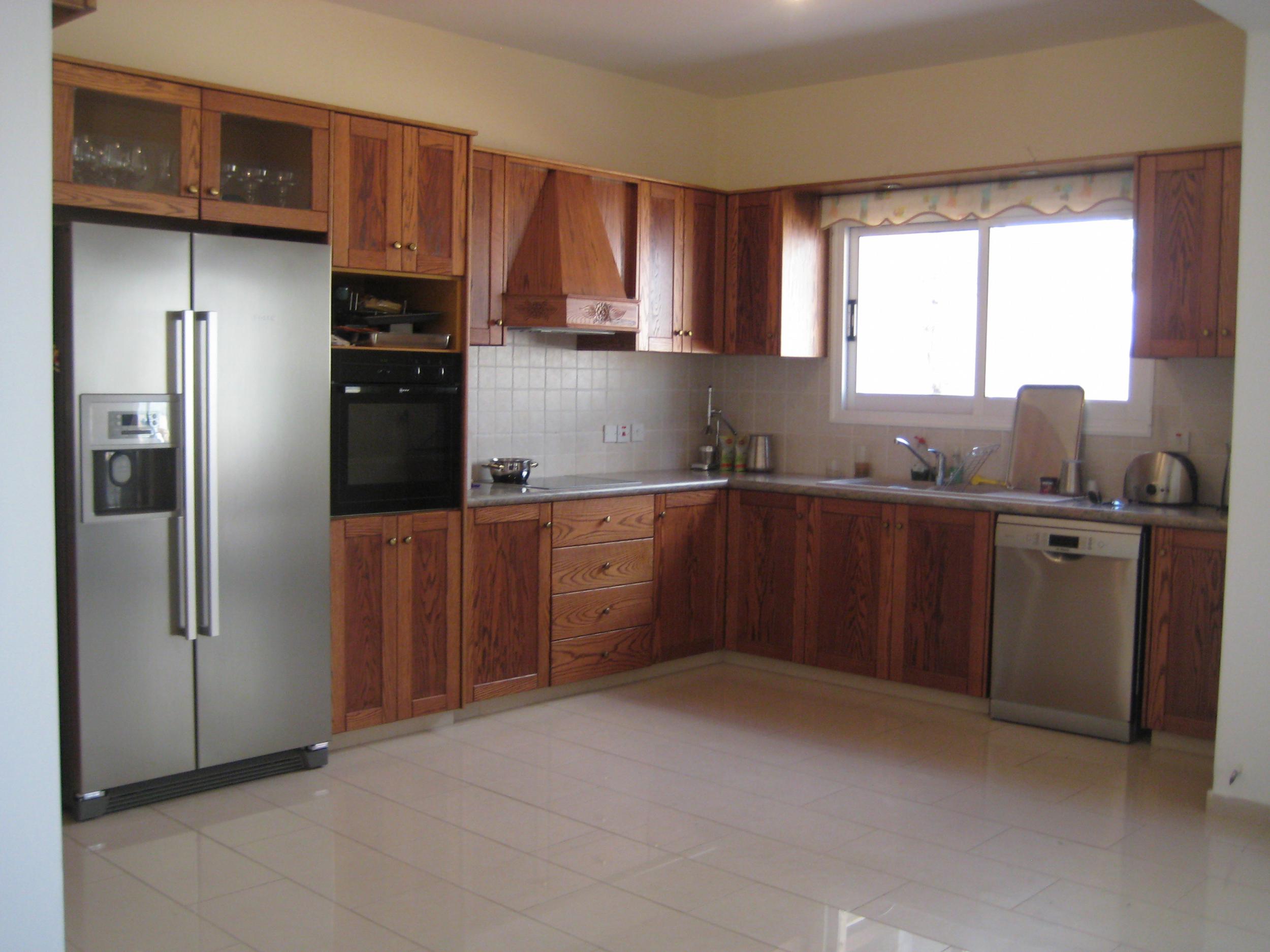 Και τώρα η ΚΟΥΖΙΝΑ…αν ειχα την δυνατότητα θα την άλλαζα τελείως. Το ξύλο των πάγκων είναι δρυς με νερά αλλά σκέφτομαι να αλλάξω τουλάχιστον τα χερούλια αλλά δεν ξέρω τι να βάλω. Εχω βάλει ενα άσπρο παγκο για στουλς αλλα νομίζω βγήκε ψηλός. Τα χρώματα που θα προτιμούσα για κουζίνα είναι πορτοκαλί, κίτρινο, λαχανί, κουζίνα παιχνιδιάρικη και χαρούμενη. Καρέκλες κουζίνας δεν έχω αγοράσει ακόμη και δεν ξερω πως να βάλω τα έπιπλα, όχι χωρις την συμβουλή σου. Η λωρίδα τοίχου πάνω από τους πάγκους σκέφτομαι να βαφτεί χρώμα και να το γεμίσω καδράκια με εικόνες από ζαχαρωτά και γλυκά. Θα ήθελα να ντύσω τον μαύρο καναπέ ή να αγοράσω άλλον. Θα ηθελα αν υπάρχει χώρος για ένα μικρό ζεστό καθιστικό. Επίσης το γυάλινο ντουλάπι στην κουζίνα θέλω να το εξαφανίσω με κάποιο τρόπο.