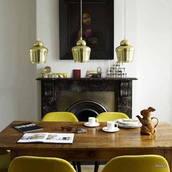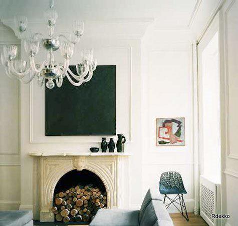 Ο τοίχος που θα βαφτεί μαύρος είναι αυτό το κομμάτι που προέχει πίσω από το τζάκι. Σε παρακαλώ να βάψεις και τα πλαϊνά τα μικρά του. Εκεί επάνω αν φοβάσαι ότι θα σου βγει πολύ μαύρο, είναι η ιδανική θέση για έναν καθρέφτη που βλέπω ότι έχεις, αλλά και για όποιον άλλο θέλεις, ίσως πιο φορτωμένο. Μετά θα βάλεις λευκό ή κόκκινο σαλόνι και με τα χαλιά που είπα. Το τραπέζι σου θα είναι ιδανικά μάρμαρο με μαύρο πόδι μεταλλικό. Ένα φωτιστικό λίγο φουτουριστικό όπως το sergei sputnic lamp θα σου κάνει καλό στο χώρο και θα του δώσει έξτρα λάμψη και στυλ. Βέβαια θα δεχτώ και έναν πολυέλαιο αλλά χωρίς καπέλα.