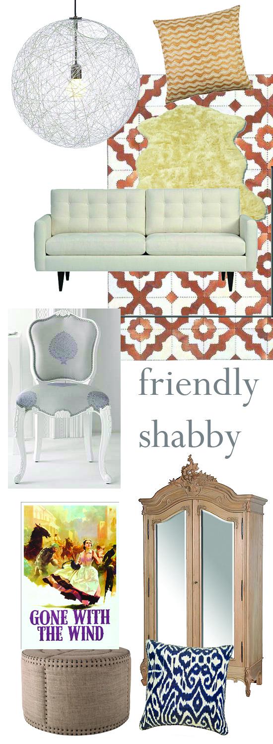 Όπως καταλάβατε πρόκειται για shabby chic φιλικού τύπου. Το λέω αυτό γιατί όσο και να μας αρέσει αυτό, όλοι ξέρουμε πως δεν μπορούμε να ζήσουμε σε σκηνικό. Έτσι η φίλη, μου δίνει την αφορμή να δείξω ένα friendly shabby chic, που σημαίνει ότι βασιζόμαστε στο λευκό χρώμα που είναι το κυριότερο στοιχείο αυτού του στυλ, αλλά προσθέτουμε και λίγα μοντέρνα στοιχεία όπως ο καναπές ή κάποιο έπιπλο για την τηλεόραση, που μπορεί να είναι ένα ολόλευκο σκέτο τελείως. Από εκεί και μετά μόνο ανοιχτό ξύλο επιτρέπεται σε αυτό το ύφος, με εξαίρεση κάποιο παλιό ξύλινο κομμάτι που μπορεί να είναι σε σκούρα απόχρωση ξυλείας. Έπειτά γερές δόσεις από χρώματα μπλε, γαλάζια, μπεζ, ροζ, λιλά και voila, le shabby chic.