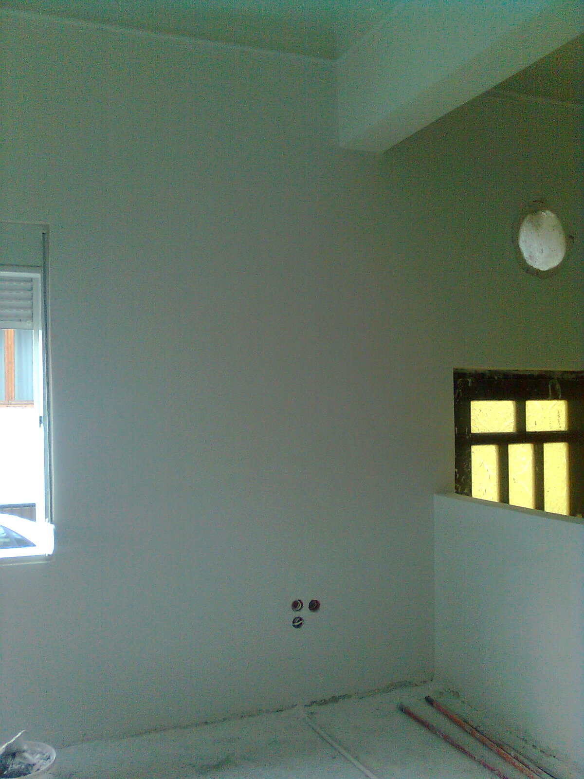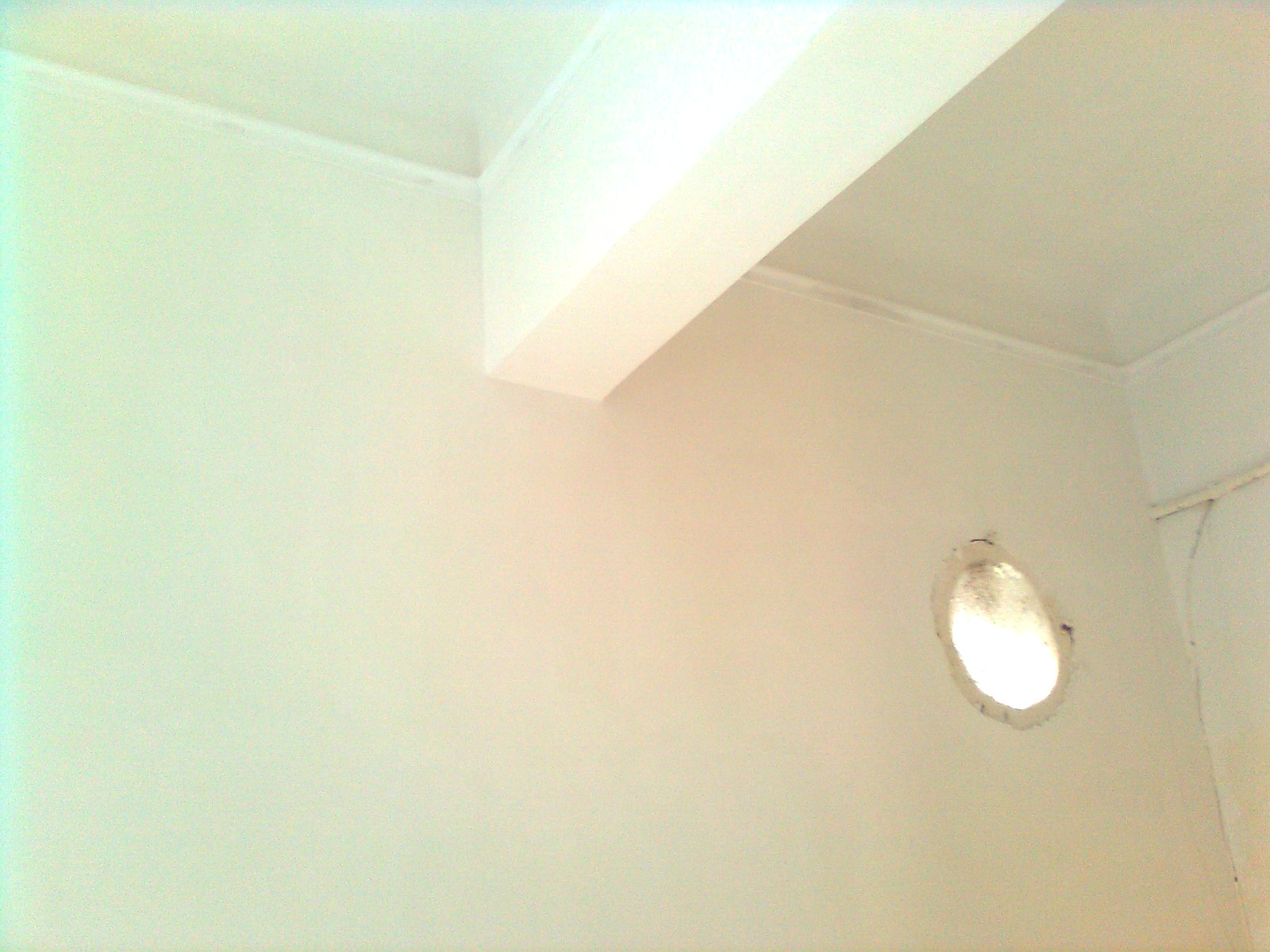 Το σπίτι είναι ψηλοτάβανο και αυτό μου αρέσει πάρα πολύ – ίσως υπήρξε ο βασικός λόγος για να το διαλέξω . Μου αρέσουν τα χρώματα στα σπίτια, μου αρέσουν και τα ολόλευκα σπίτια. Το συγκεκριμένω σπίτι είναι πολύ φωτεινό. Με το χρώμα στα ταβάνια τι να κάνω; Να κάνω παιχνίδι ή να τα λευκάνω; Όπως θα δείς, δεν είναι γωνία με τον τοίχο – κάνει κούρμπα και είναι υπέροχη αυτή η κοιλότητα – όπως μπορείς να δεις από τις φωτο που σου στέλνω.Το γύψινο που έχει μπει, οριοθετεί την περιοχή του ταβανιού, «κατεβάζοντάς» το λίγο.