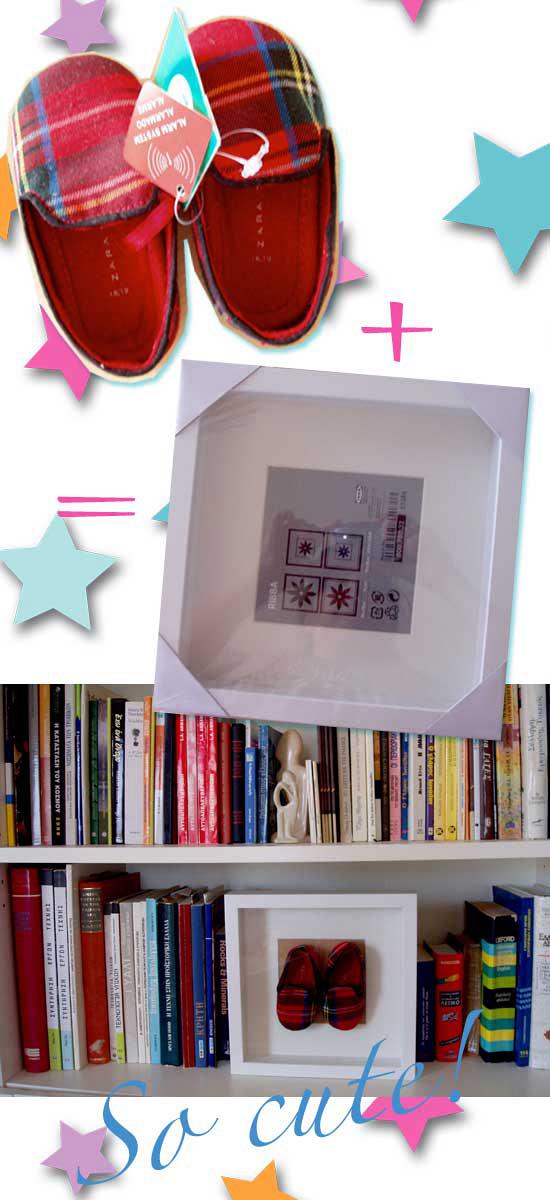 Tα παντοφλάκια είναι μια πρώτη προσπάθεια που στέφθηκε με επιτυχία. Δε φορέθηκαν γιατί το ποδαράκι μεγάλωσε αγνοώντας πως εκείνα περίμεναν στη ντουλάπα για την πρεμιέρα τους. Η μαμά όταν το πήρε είδηση αυτό, σκέφθηκε με χαρά το μεγαλύτερο πατουσάκι, αλλά αμέσως λυπήθηκε τα κόκκινα παντοφλάκια που έμειναν αχρησιμοποίητα. Είπε τότε: “Όχι, δε θα μπείτε σε πατουσάκια να τα ζεστάνετε, αλλά θα μπείτε κάπου αλλού που θα σας θαυμάζουν όλοι”. Έτσι και έγινε.