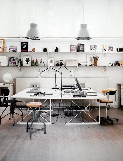 Thank God που έχουμε το Pinterest να μαζεύουμε εκεί όλες μας τις φωτογραφίες και εκεί πήγα για να βρώ όλες αυτές τις ομορφιές μον σερί. Η πρώτη φωτογραφία είναι και η καλύτερη μου. Με αυτή, η καρδιά μου χτύπησε όπως είχε χτυπήσει δυνατά για ακόμα ένα χώρο εργασίας που τον είχα παραγγείλει στον Αη Βασίλη κάποια Χριστούγεννα πριν. Έτσι και θα γίνει. Λευκό δάπεδο, λευκοί τοίχοι, ρόλερ στα παράθυρα και σίγουρα λευκές επιφάνειες εργασίας. Σε έχω.