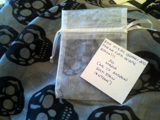Θα εξηγηθώ ευθύς αμέσως. Μέσα στο γλυκό φακελάκι από το Ελληνικότατο No Fashion way e-shop με αξεσουάρ και άλλα γυναικεία τζιριτζάντζουλα, υπήρχε το μικρό γλυκό ευχαριστώ από μια αναγνώστρια. Από μια Rdeco-fan καλέ. Έγραφε ότι διαβάζεις στη φωτό και μαζί είχε ένα μικρό γλυκό βραχιολάκι με νεκροκεφαλίτσα. Δωράκι για μένα!!! Πόσο χάρηκα; Δε λέγεται. Η Μαρία με το αντρικό σπίτι. Εκείνη που λέγαμε, πόσο τέλειο είναι το δάπεδο της και μέχρι και τα παιδιά από τη Dipo μπήκαν και μας ευχαρίστησαν, που πούλησαν το δάπεδο. Εκείνη που έλεγα, πως μου θύμισε αντρικό σπίτι το σπίτι της. Με βρήκε στους πελάτες και μπήκε στη διαδικασία να μου στείλει ένα δωράκι. Κοίτα τώρα…