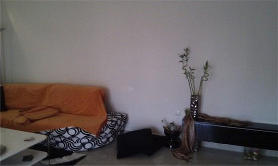 Ο καναπές θα δηλώσω πως δεν μου αρέσει. Κάτι έπαθε ή έτσι ήταν; Μισός-μισός; Όπως και να έχει, είναι στριμωγμένος σε μια γωνία, σε ένα καλοριφέρ, σε ένα στενό δίχως λόγο, αφού βλέπω πως χώρο έχεις. Τράβα τον μπροστά, διώξε τη λάμπα, βάλε πίνακες ή ταπετσαρία με θέμα. Πριν γυρίσω πλευρά, να αναφερθώ πως και οι κουρτίνες, με αυτό το πιάσιμο, δεν είναι καθόλου μοντέρνες. Προτείνω πάντα ρόλερ ή ρόμαν στο παράθυρο, σε λευκό χρώμα, και κουρτίνα ή ρόλερ ή ρόμαν στην μπαλκονόπορτα. Να ξέρετε επίσης, πως μια τόσο λεπτή κουρτίνα, αν δε ζεις σε νησί, δεν κολακεύει κανένα σπίτι, τ’ ορκίζομαι. Πετάς επίσης το πορτοκαλί ριχτάρι, όχι γιατί είναι πορτοκαλί, αλλά γιατί είναι ριχτάρι. Ζήσε το έπιπλο σου.