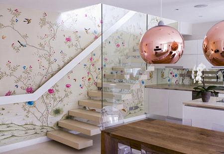 Μια καθόλου ουτοπική εξέλιξη ενός τοίχου. Μια κατάσταση φωτεινή, χαρούμενη που σου δείχνει πόσο μα πόσο ταιριάζει ο Tom Dixon με τα λουλούδια. Χωρίς πλάκα, έφερα μια ταπετσαρία στο Rdecoshop, τη Ophelia της Harlequin, που είναι κομμένη και ραμμένη στα γούστα μου. Eξίσου δυνατά παίζει και η Farfala με πεταλούδες by Nina Campbell.