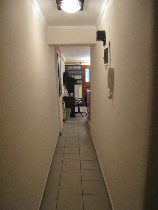 Θα αρχίσω από το διάδρομο και θα πω πως αν είναι να το κάνεις, να το κάνεις με δόξα και τιμή. Ή το γεμίζεις ή δε το γεμίζεις. Και θα φαίνονται και ύφος θα έχει, σε σχέση με τώρα που είναι ένας γυμνός διάδρομος, όπως λες. Και στους δύο τοίχους, καδράκια πολλά μικρά ή μια συνέχεια πόστερ με κάποιο θέμα. Μεγάλα στην ίδια ευθεία.