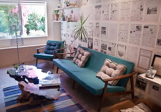 Εφημερίδες ταπετσαρία στο τοίχο με την καμάρα. Eύκολο και ευφάνταστο, όπως μου ζητάς άλλωστε.