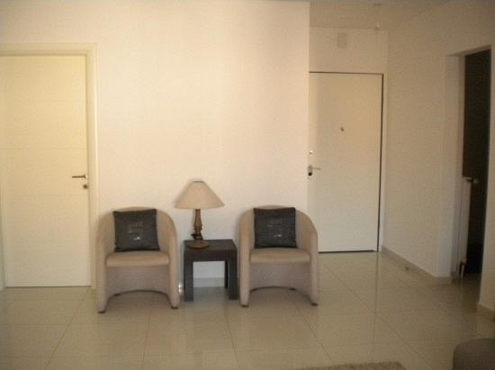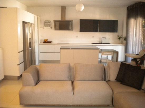 Στη συνέχεια με ρωτάς για το καθιστικό. Σου λείπει τραπεζάκι και φωτιστικά και ένα ανάκλιντρο τύπου για να συμπληρωθεί. Όντως αν έβαζες ένα κάτι σε έπιπλο εκεί που έχεις τις πολυθρόνες σου, θα έφτιαχνε ο χώρος. Για τραπέζι θα σου προτείνω το γνωστό στρογγυλό που προτείνω συνήθως. Αυτό γιατί η γωνία σου είναι μικρή σε μέγεθος και θεωρώ πως πρέπει να έρθει και να ξεκολλήσει και λίγο από την κουρτίνα. Ένα στρογγυλό διάφανο τραπέζι, δε θα δείχνει όγκο, και δε θα είναι επικίνδυνο για τα παιδιά. Μια άλλη εκδοχή (μάλλον η καλύτερη κατά τη γνώμη μου) θα ήταν να βάλεις ένα χρωματιστό πλακίδιο στη πλάτη του τοίχου της κουζίνας και να επαναλάβεις το χρώμα σε ένα, δύο ή τρία απλά panier της Kartell.