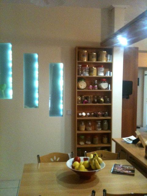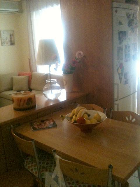Γεια σου Έυα!! Είμαι η Φλώρα απο το Παγκρατι και σου δείχνω το σπιτάκι μου. Σου γράφω, γιατι νομίζω οτι χρειάζομαι ιδιαίτερα πριν το διαγώνισμα. Θα σου μιλήσω για τις αλλαγές που θέλω να κάνω, μερικές εκ των οποίων έχουν δρομολογηθεί ήδη. Ξεκινάω απο την κουζίνα, η οποία, προκειμένου να δημιουργήσω ένα επιπλέον δωμάτιο στο σπίτι, έγινε πιο μικρή και ο τοίχος που γκρεμίστηκε αντικαταστάθηκε απο έναν τοίχο γυψοσανίδα (αυτός με τα τρία τζαμάκια) οπου εκει ήταν και το τραπέζι της κουζίνας. Ακολουθώντας λοιπόν τις συμβούλες σου σκέφτηκα τα εξής: να βγάλω εντελως το πάσο και να βάλω μια στρογγυλή τραπεζαρια (παλια τραπεζαρια αγαπημενης μου θείας την οποία αναπαλαιώνω και την βάφω γκρι-μπεζ) με τέσσερις καρεκλες (οι καρέκλες είναι ίδιες με την φώτο σε γκρι παστελ).