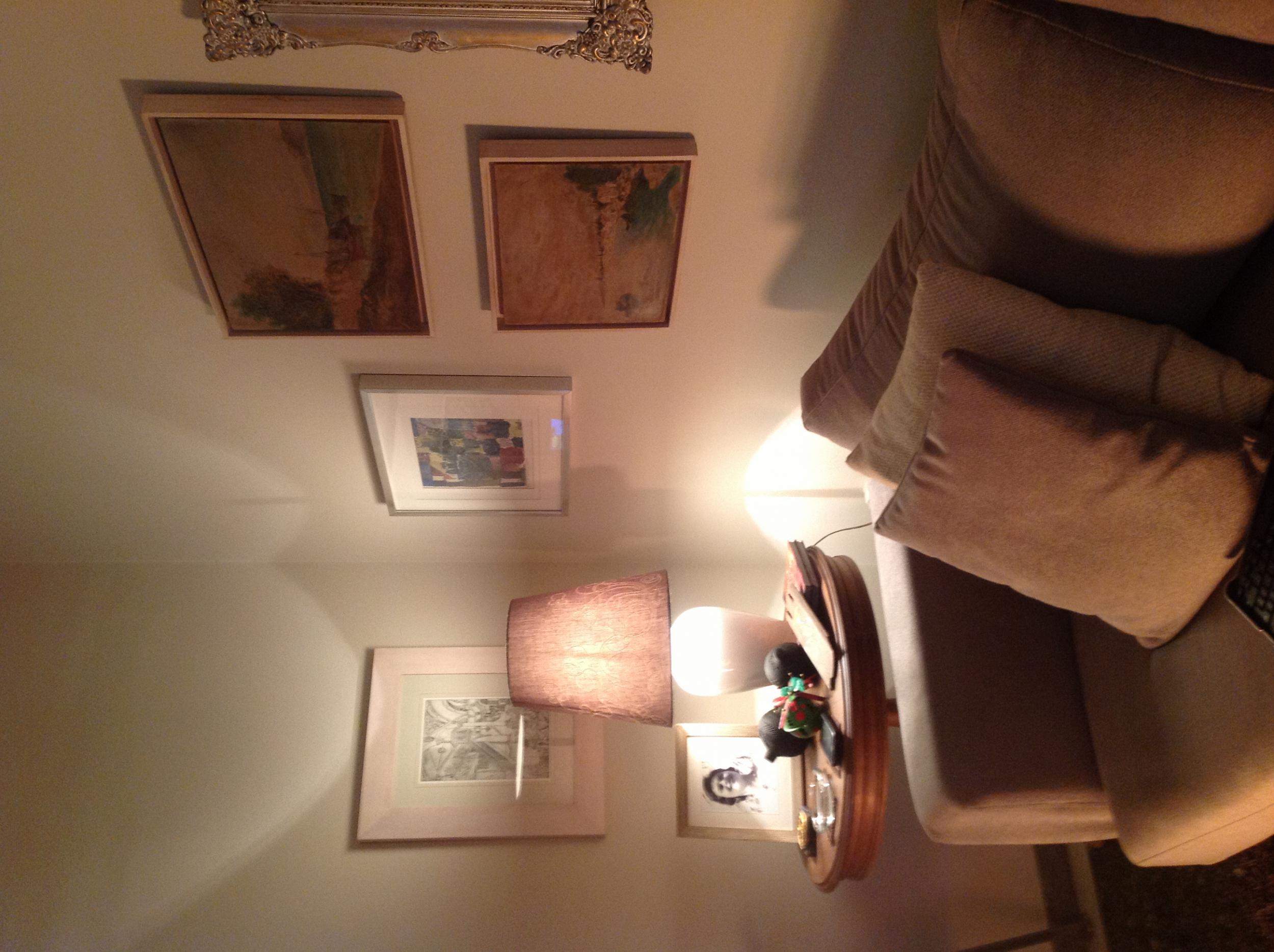 Απέναντι βλέπεις τον καναπέ Νο1, ανάμεσα σε δύο τραπεζούδια που φιλοξενούν πολλές χιλιάδες αντικείμενα. Πίνακες με και χωρίς αξία, αλλά συναισθηματικά ντοκουμέντα φυσικά υπάαρχουν. Καναπέδες μοντέρνοι σε τετράγωνη φόρμα και καρέκλα design, μιξ με όλα τα αντικέ.