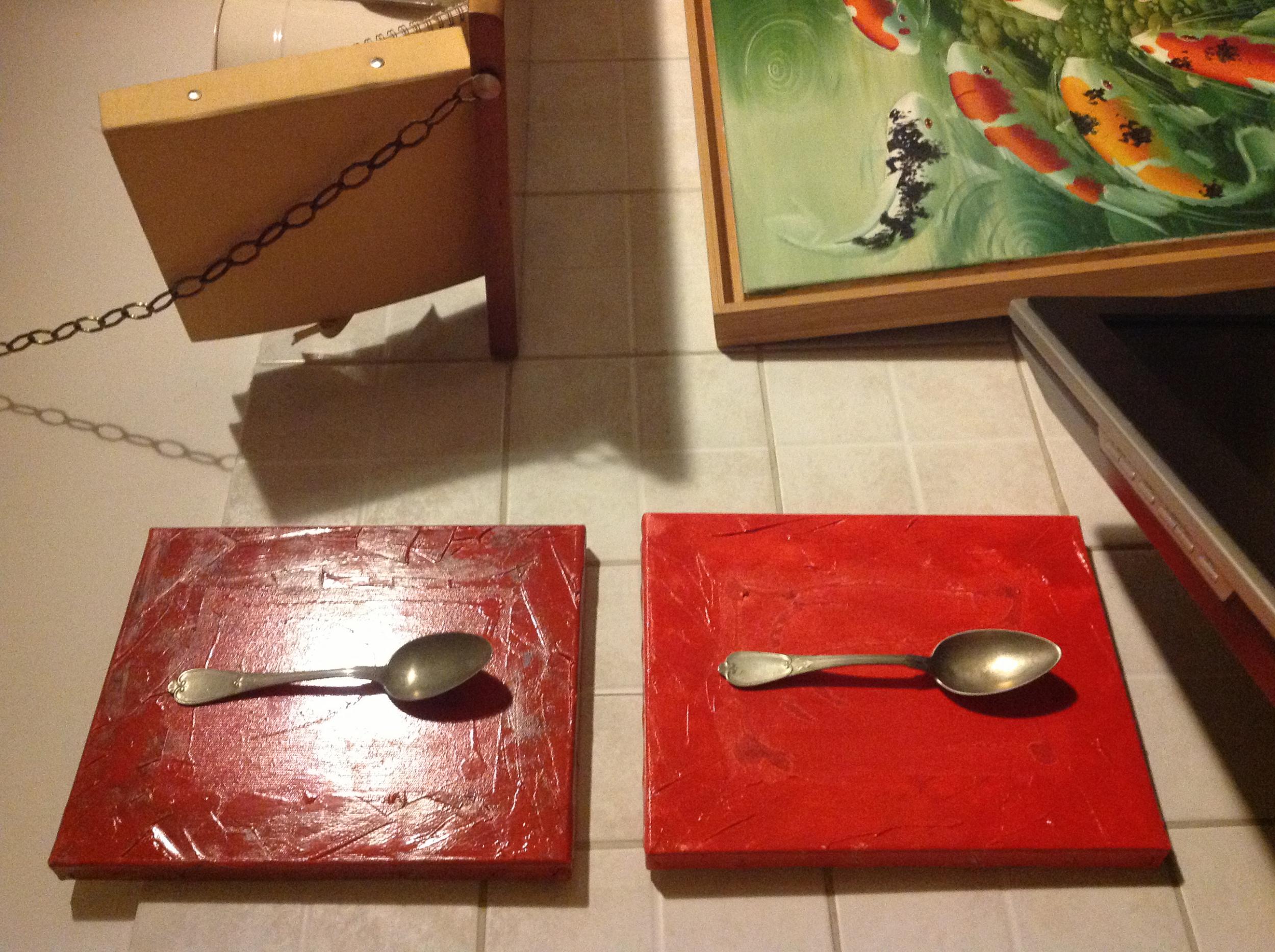 Kαι από εδώ πας για bedrooms και κουζίνα. Κάποιοι πίνακες φυσικά είναι δημιουργίες του ιδιοκτήτη. Κουζίνα με 100ντάδες εργαλεία αφού μαγειρεύει το προκομένο μου. Και από κάτω τέχνη με αυθεντικό vintage κουταλικό της γιαγιάς. Άμα έχεις μόνο δύο, τι να τα κάνεις; Τα κρεμάς!