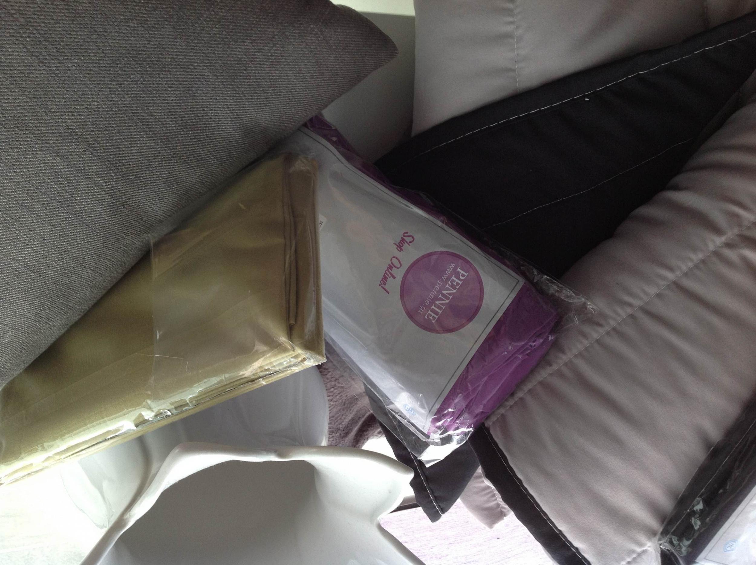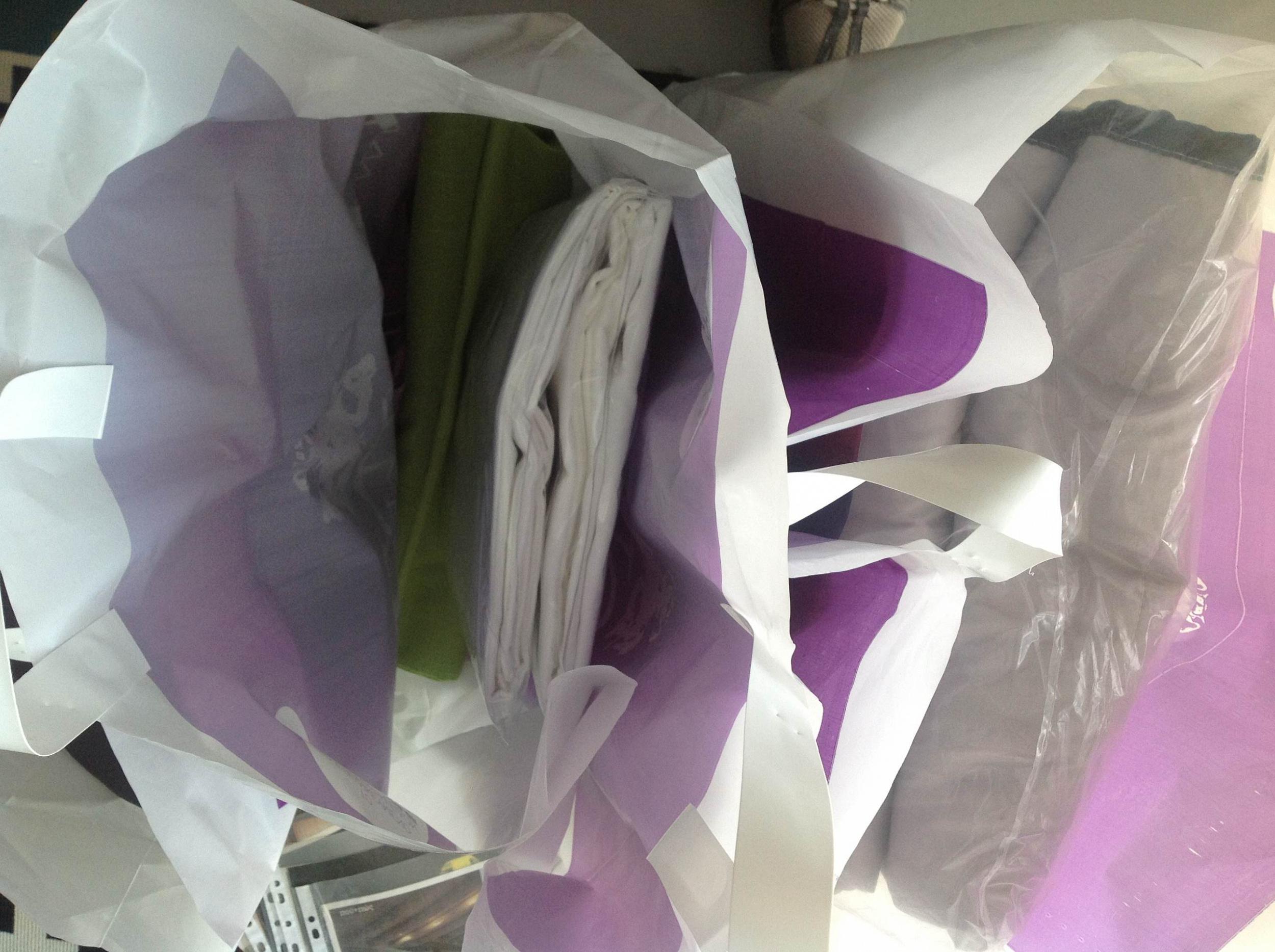 Αγοράστηκαν, κουβρ-λί σε φάση ντουμπλ-φας, μαύρο και γκρι, κουβέρτα τύπου υφαντή με φανταστικό λουλούδι κεντητό, πάλι σε γκρι-μαύρο και σεντόνια μοβ, πράσινο και πακέτο μαξιλαροθήκες με 3,99, στα ανάλογα χρώματα. Τσίμπησα και μια fleece κουβέρτα για τον καναπέ σε γκρι, με σατέν φάσα. Στο τέλος φυσικά αγοράστηκαν και τα τραπεζομάντηλα βέβαια. Εκτεταμένα θα τα δείτε και στρωμένα, αφού την άλλη εβδομάδα περιμένω τα μαστόρια να ξεκινήσουν τις εργασίες.