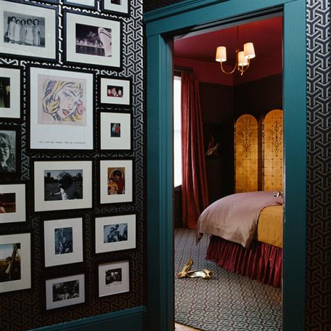 Το απίθανο πράσινο-πετρόλ χρώμα πάλι που βλέπεις από κάτω, είναι τολμηρό και σκούρο και ναι, θα γινόταν να μπει μόνο σε κουφώματα ώστε να δώσεις μια βασιλική νότα στο χώρο. Στη φωτογραφία βλέπεις βέβαια πως έχουν και το σοβατεπί ίδιο, αλλά και μόνο τα κασώματα μαζί με την απίθανη αυτή ταπετσαρία.