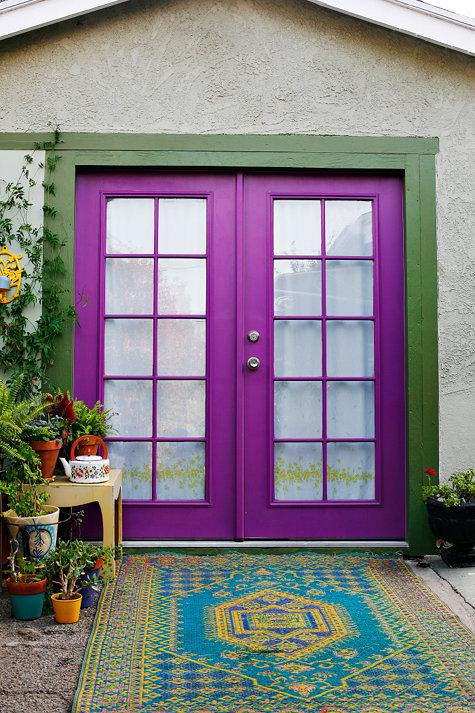 Και να σε πάω και στο άλλο το φοβερό τον αμέθυστο, που είναι μοβ και γράφει παντού. Λένε πως προστατεύει τον ιδιοκτήτη του από τη μαγεία και εξισσοροπεί το μεταβολισμό. Εδώ το βλέπεις σε πόρτα, εξώπορτα αυτή τη φορά για να καταλάβεις πόσο μπορείς να αλλάξεις τα πάντα με ένα τενεκεδάκι χρώμα.