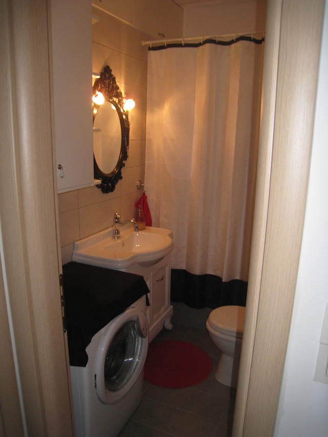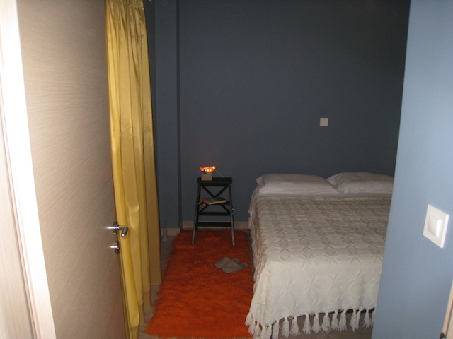 Τέλος θα ήθελα να πηγαίνω προς την κρεβατοκάμαρα και να έχω έναν πίνακα σε αυτό το τοίχο και φυσικά το μεγάλο για πίσω από το πολυθρονάκι μου. Στο μπάνιο δε θα έκανα αλλαγές γιατί είναι μια χαρά κουκλάκι και στην κρεβατοκάμαρα φυσικά θα ήθελα κομοδίνα, φαντάζομαι καμιά παλιά βαλίτσα στη μια πλευρά και μια απλή καρέκλα στην άλλη. Κάτι που δε θα ήθελα επίσης στη κρεβατοκάμαρα μου είναι αυτές οι κουρτίνες. Θα έβλεπα την κλασική δαντελίτσα του Ikea και μπροστά της κάτι πιο βαρύ αλλά μουντό όχι γυαλιστερό.
