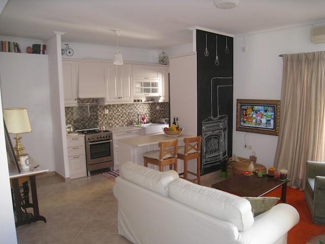 Και το λατρεύω το σπιτάκι μου, γιατί έχω διαλέξει και την παραμικρή λεπτομέρεια, από τη διαρρύθμιση της κουζίνας μέχρι τα πομολάκια και τους σκουπιδοντενεκέδες! Έχει πράγματα καινούρια και παλιά, φλοκάτες της μαμάς μου, το φοιτητικό τραπεζάκι του φίλου μου, μια λάμπα που βρήκα στο υπόγειο, μικρά διαλεχτά δωράκια αυτών που με αγαπούν και γενικά ό,τι μου ταίριαζε πολύ. Δεν είναι πλήρες ακόμα, αλλά είμαι σε καλό δρόμο και για αυτά που του λέιπουν δε βιάζομαι: θα τα δω κάποια στιγμή μπροστά μου και θα τα επιλέξω αμέσως. Αυτό όμως που θέλω ουσιαστικά να πω, είναι οτι σε ευχαριστώ πολύ για τις ιδέες και για το γούστο (;), το στυλ (;), την αίσθητική (;) που μου χάρισε το R-deco. Σου στέλνω μερικές φωτογραφίες και αν έχεις κάτι να μου προτείνεις, ευπρόσδεκτο! Στο σαλόνι θα βάλω έναν μεγάλο πίνακα από το πατρικό μου (αλλά δεν θέλω να τους τον στερήσω ακόμα)  και για προσκέφαλο στο κρεβάτι ετοιμάζω μια παλιά πόρτα που περιμαζέψαμε με τον φίλο μου από τα σκουπίδια (αν και δεν ξέρω αν αυτό το πρότζεκτ θα πάει καλά…). Α! Και η νέα ζωγραφιά στον μαυροπίνακα είναι μια μαντεμένια σόμπα, γιατί δεν έχω ακόμα κεντρική θέρμανση!!