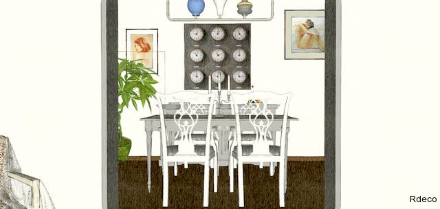 Προς το χώρο τώρα του τραπεζιού και ακριβώς το φως δεν θα είναι και άπλετο φαντάζομαι ούτε εκεί, όλα σε λευκό που γκριζάρει, βάψιμο και το τραπέζι και οι καρέκλες και ο μπουφές για ευκολία και αλλαγή. Κάτι τέτοιο ήταν η έμπνευση μου για σένα. Με το δικό σου δάπεδο, όλα θα δείχνουν πιο σκούρα και το φως που διαθέτει ο χώρος. Προσωπικά επίσης δε θα κάλυπτα το μωσαϊκό αυτό, απλά θα του έκανα ένα καλό γυάλισμα. Πιστεύω γενικά πως θα ήταν προτιμότερο να ξοδέψεις χρήματα σε καλό βάψιμο, καλό γυάλισμα δαπέδων και όσα αξεσουάρ και έπιπλα θέλεις στην περίπτωση σου παρά σε αλλαγές τέτοιου τύπου που περιγράφεις.